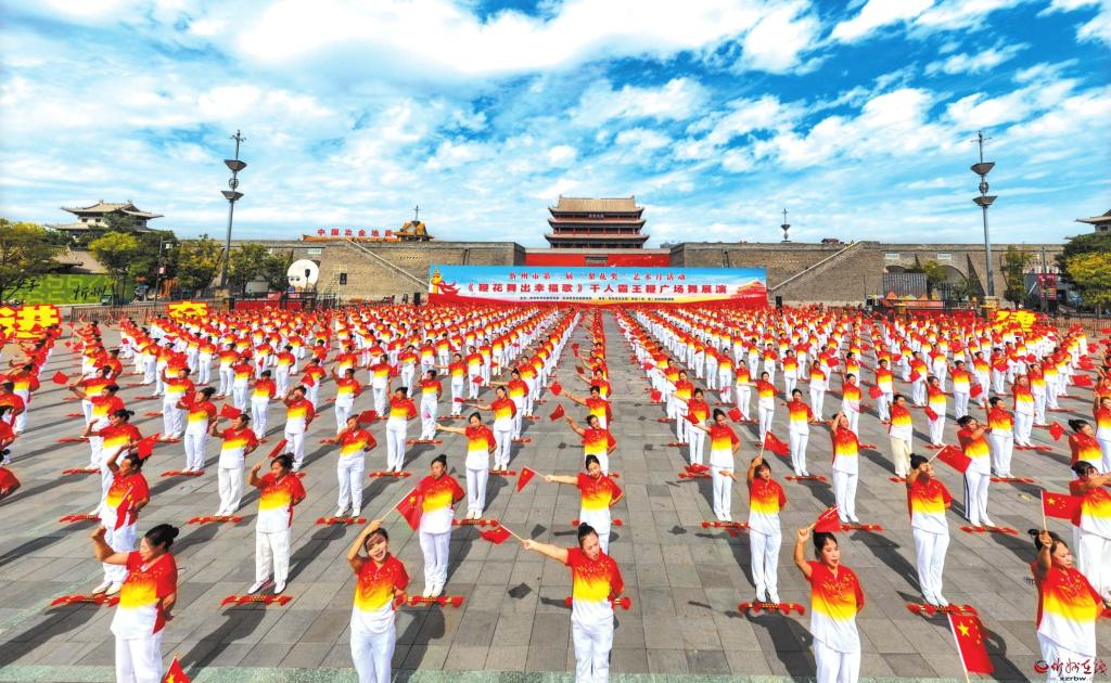 9月26日,來(lái)自全市14個(gè)縣(市、區(qū))代表隊(duì)的近千名舞者齊聚忻州古城,伴隨著配樂(lè)《鞭花舞出幸福歌》的激揚(yáng)曲調(diào),共同演繹霸王鞭廣場(chǎng)舞,并齊聲合唱《歌唱祖國(guó)》,為即將到來(lái)的國(guó)慶節(jié)獻(xiàn)禮?;顒?dòng)中,演員們整齊劃一的動(dòng)作、昂揚(yáng)向上的精神風(fēng)貌,生動(dòng)展現(xiàn)了對(duì)美好生活的向往,得到了廣泛好評(píng)。常麗琴攝