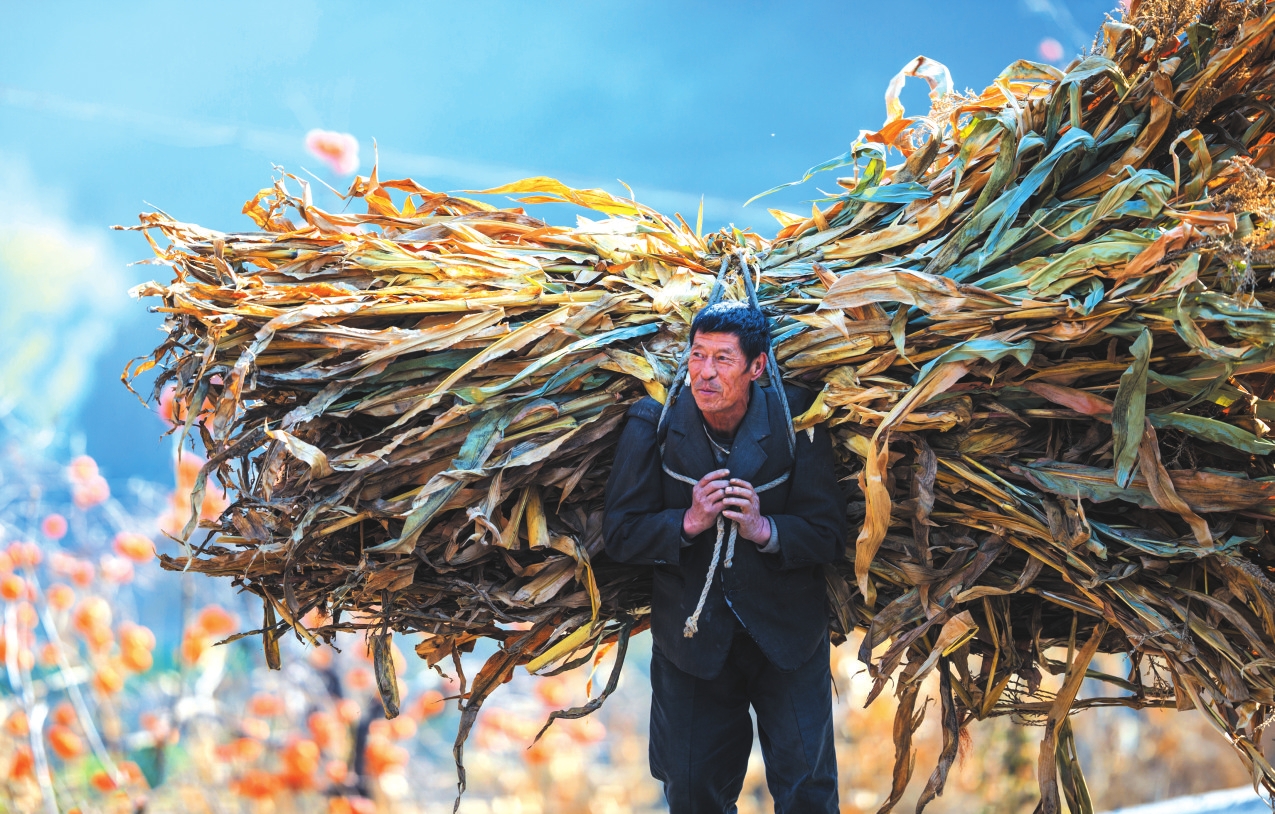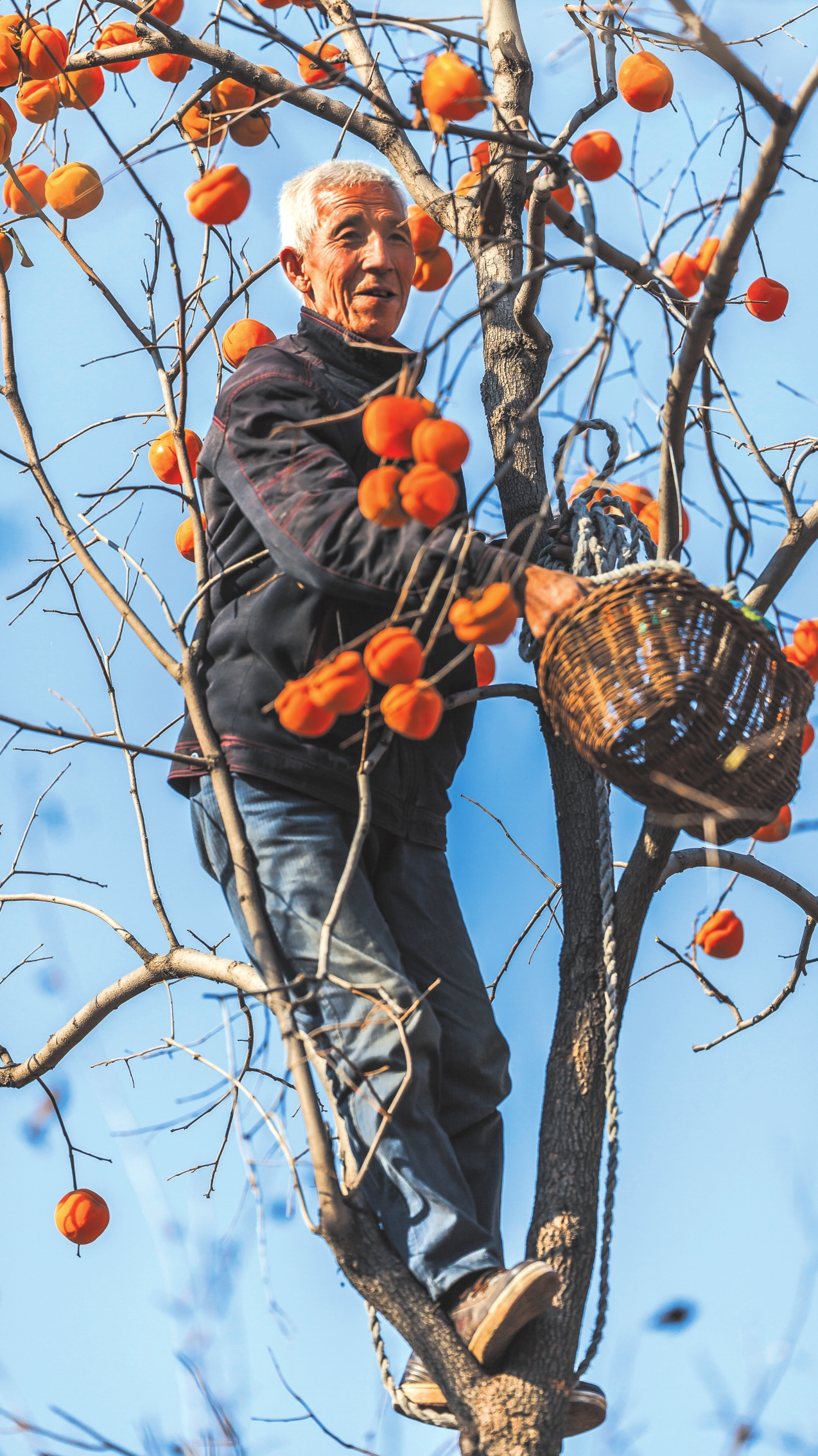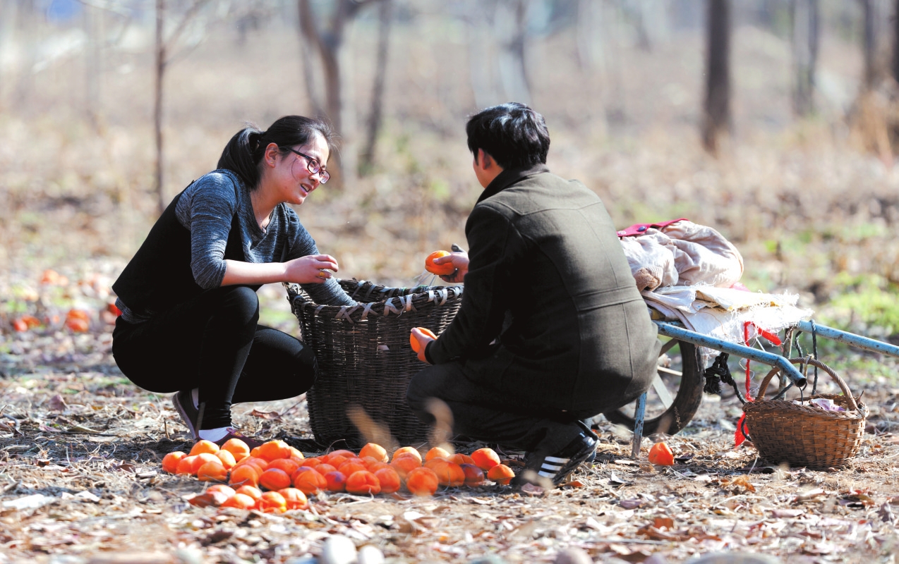 地頭那畔,景象便不同了。一對年輕的夫婦,正手腳利落地采摘、分揀柿子。竹籃里,橙紅的果實漸漸堆成小山。他們時而低語,聲音輕得像風拂過枝梢,說的或許是今年柿子的成色,盤算著能賣個好價錢;或許是在憧憬,等這筆錢到手,該給娃添置些什么。他們額上有細密的汗珠,眉宇間有勞作后的倦色,但那份倦色底下,卻藏不住一股子蓬勃向上的勁兒,一種屬于明天的、清亮亮的盼頭。