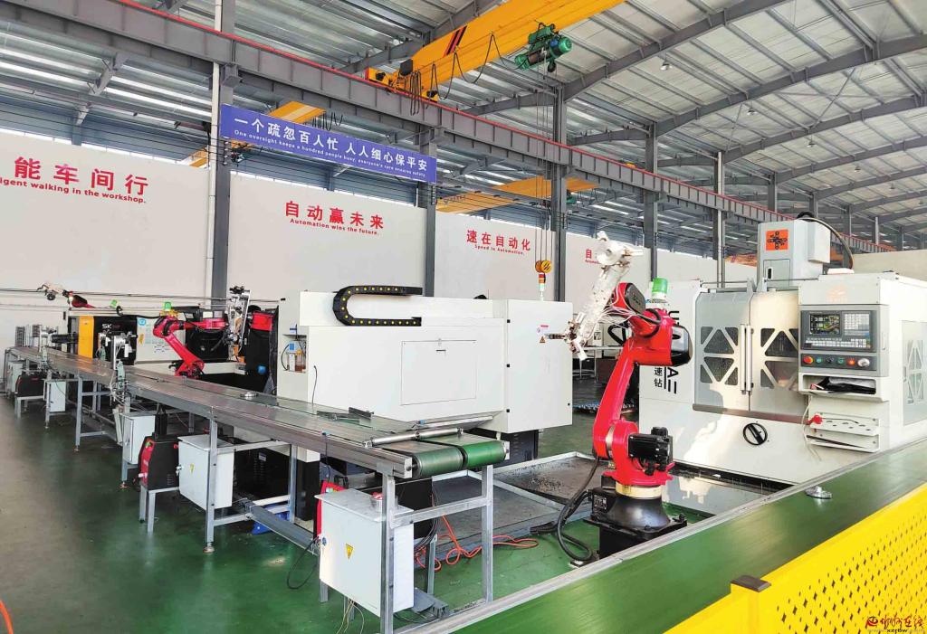 定襄縣高新技術創(chuàng)新服務中心小法蘭智能化生產(chǎn)線,是企業(yè)與高校合作研發(fā)的智能化生產(chǎn)成果轉(zhuǎn)化項目。該生產(chǎn)線可實現(xiàn)從原材料上料、加工到成品下料的全流程無人化操作,與過去法蘭生產(chǎn)線相比較,加工效率提升了約30%,產(chǎn)品生產(chǎn)成本整體降低了30%。(張玉虎 攝)