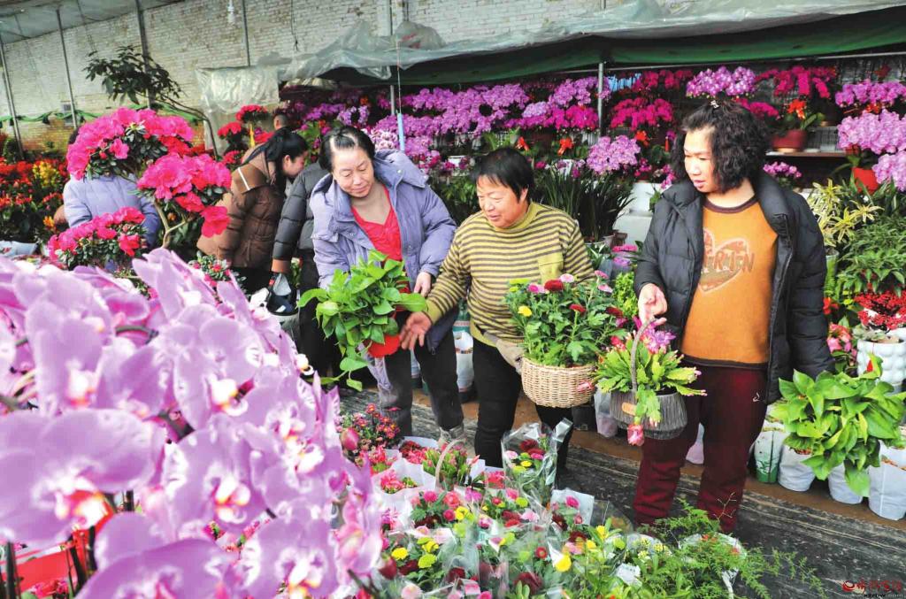 2月4日,原平市南城街道柳巷村的花卉大棚內(nèi),市民正在選購(gòu)鮮花。春節(jié)將至,濃濃年味催熱花卉市場(chǎng),眾多市民爭(zhēng)相選購(gòu)鮮花,用繽紛花束裝扮家居、渲染年味。(褚震攝)