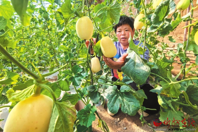 4月3日,忻府區(qū)部落村農(nóng)民于亮燈正在大棚內(nèi)采摘香瓜。該村從育苗到成熟全程嚴格把控,采用綠色生態(tài)種植方式,確保香瓜的品質(zhì)和口感。 (記者 劉紀森攝)