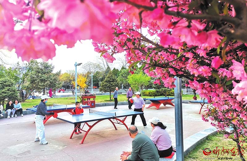 4月12日,市民在和平廣場開展戶外活動。暮春時節(jié),忻州城區(qū)姹紫嫣紅,處處生機勃勃。(