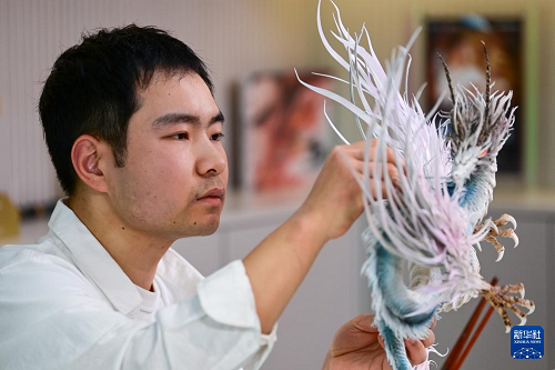 糖藝師張勃在制作糖藝作品《山海經(jīng)應(yīng)龍》(1月13日攝)。(新華社記者 鄒競(jìng)一 攝)