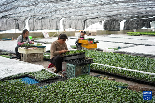 1月28日,在莘縣燕店鎮(zhèn)的蔬菜種植大棚,農(nóng)戶在進(jìn)行大棚蔬菜種苗嫁接工作。(新華社記者 徐速繪 攝)