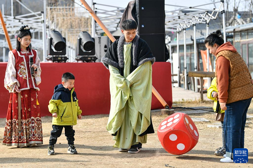 2月25日,游客在山西太原古縣城參加趣味活動。(新華社記者 曹陽 攝)