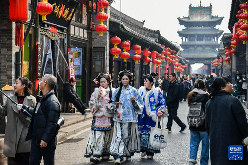 2月27日,游客在山西省晉中市平遙古城游玩。(新華社記者 曹陽 攝)