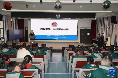 3月5日,在南京師范大學(xué)附屬中學(xué)新城小學(xué)怡康街分校的課堂上,來自南京市公安局建鄴分局南苑派出所的民警為學(xué)生們授課。(新華社發(fā) 劉臻睿 攝)
