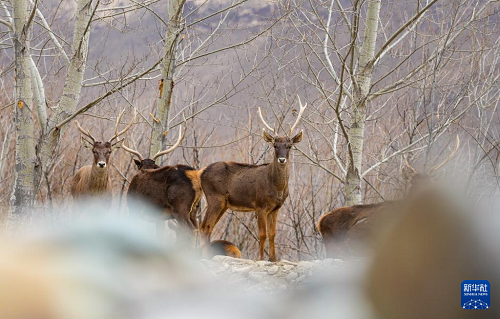 這是3月15日在西藏山南市乃東區(qū)結(jié)巴村拍攝的白唇鹿。(新華社記者 晉美多吉 攝)
