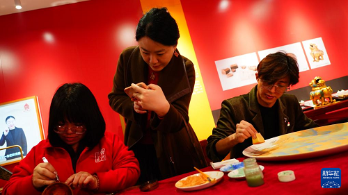 3月26日,殘疾人手工藝人現(xiàn)場展示非遺技藝。(新華社發(fā))