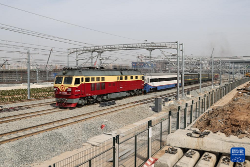 3月29日,檢測(cè)列車從建設(shè)中的西安東站駛出,開往湖北鄖西站。(新華社發(fā) 劉翔 攝)