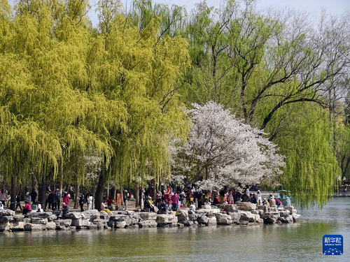 4月1日,游客在北京玉淵潭公園游覽。(新華社記者 邢廣利 攝)
