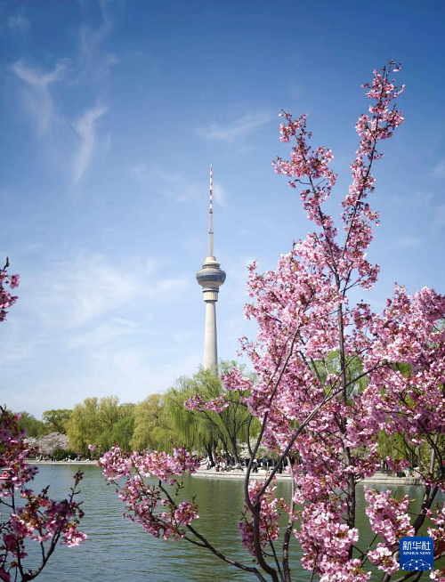 4月1日拍攝的北京玉淵潭公園盛開的櫻花。(新華社記者 邢廣利 攝)