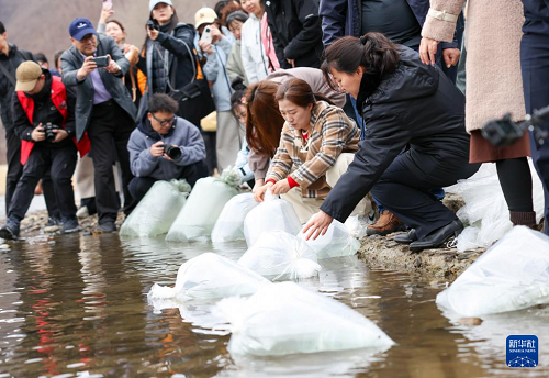 4月15日,吉林省2026年圖們江水生生物資源增殖放流活動(dòng)在琿春市密江河大麻哈魚國(guó)家級(jí)水產(chǎn)種質(zhì)資源保護(hù)區(qū)舉行,共放流大麻哈魚52萬尾、馬蘇大麻哈魚8萬尾。魚苗均經(jīng)嚴(yán)格檢疫、計(jì)數(shù),并由公證機(jī)構(gòu)現(xiàn)場(chǎng)公證。