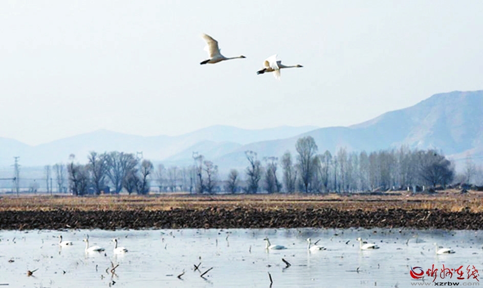 成群白天鵝棲息定襄