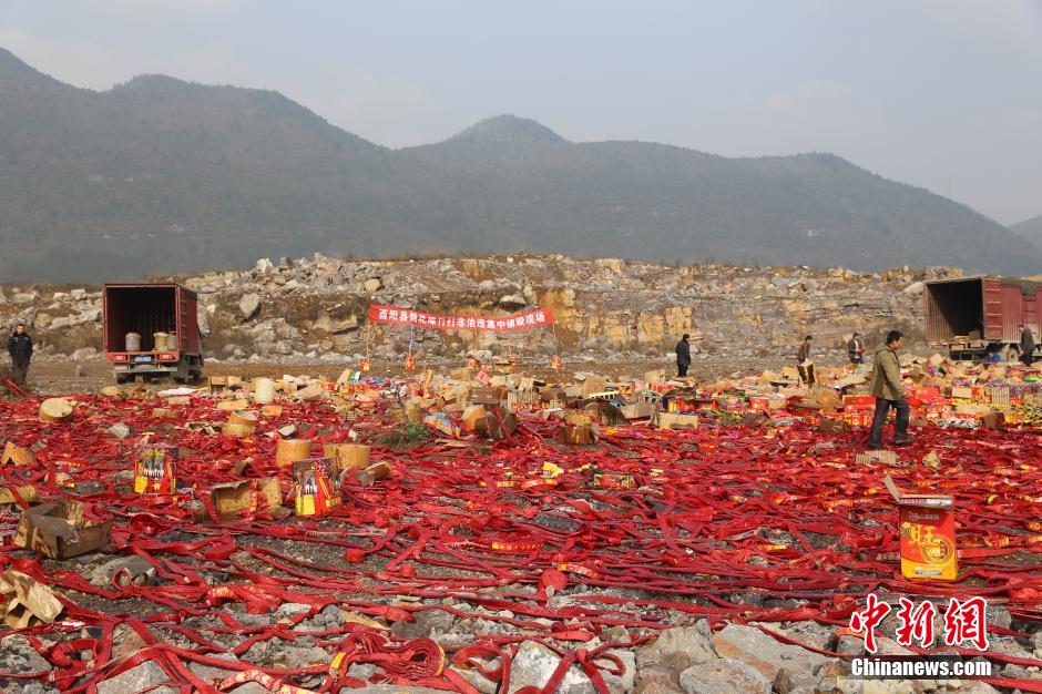 近日,重慶酉陽集中銷毀2097件假冒偽劣煙花爆竹產品,價值30多萬元。據介紹,這些產品由煙花爆竹專項檢查查獲,種類涵蓋各類鞭炮、擦炮、煙花和一些裝藥量較大的鞭炮,如不及時銷毀,一旦流入市場將對市民的生命財產安全構成重大威脅。因數量較大,集中點燃后,銷毀現場上方形成了高達幾十米的白色煙霧。張書浩攝