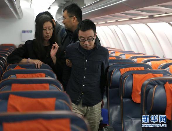 2月6日,在北京首都機(jī)場,“百名紅通”嫌犯付耀波(后中)、張清曌(前中)被抓獲歸案。當(dāng)日,在中央追逃辦統(tǒng)一部署下,在外交部、公安部及我駐巴巴多斯、格林納達(dá)等駐外使館的大力協(xié)助下,遼寧省追逃辦組織協(xié)調(diào)檢察、公安等部門,成功將遠(yuǎn)逃至加勒比海島國圣文森特和格林納丁斯的“百名紅通”第39號嫌犯付耀波、第41號嫌犯張清曌同時抓獲歸案。新華社記者殷剛攝