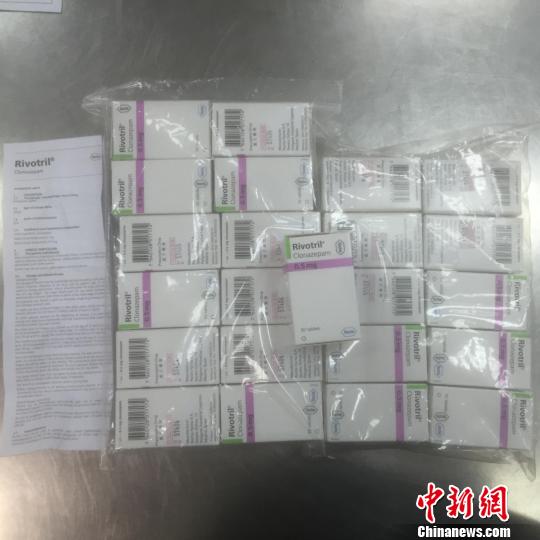 經(jīng)查驗發(fā)現(xiàn),背包內(nèi)放置著23盒嶄新的藥物,共計1.4千克。這些藥物分四排用透明塑料紙纏繞,每個盒子內(nèi)裝有一個塑料藥瓶,內(nèi)有50片藥丸。藥盒上及內(nèi)部的說明書均為外文印刷。在最外面包裝上,貼著用中文繁體字印刷的“毒藥”和“處方藥物”字樣。關員立刻查閱了藥品說明,發(fā)現(xiàn)這些藥物居然是被稱為“最強安眠藥”的氯硝西泮。