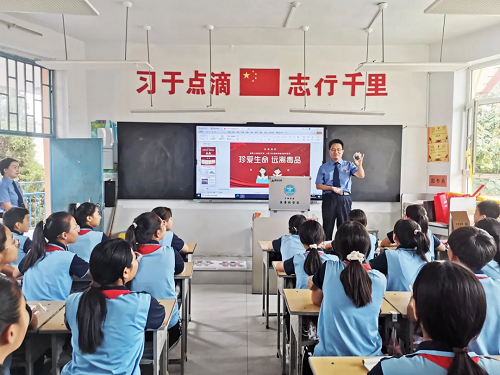 課堂上,檢察官、法官們以圖文并茂的方式,為高年級同學(xué)們講授毒品的概念、種類,打擊毒品違法犯罪的相關(guān)法律規(guī)定,毒品犯罪的社會危害性,以及我國為國際禁毒事業(yè)做出的成績。