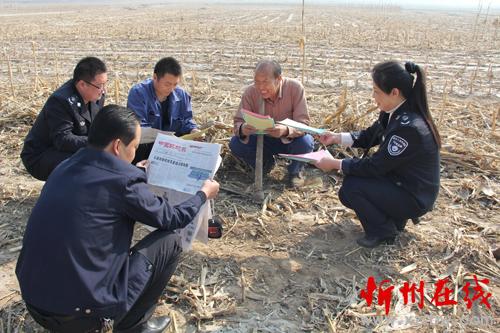 怎樣把《中華人民共和國(guó)大氣污染防治法》和《五臺(tái)縣人民政府嚴(yán)防森林火災(zāi)的通告》宣傳到人?五臺(tái)縣環(huán)境保護(hù)局、環(huán)境監(jiān)察大隊(duì)分組劃片,組織環(huán)保人員深入到田間地頭,面對(duì)面讀報(bào)給農(nóng)民聽,手遞手散傳單讓農(nóng)民看,為農(nóng)民解釋燒秸稈、燒地堰、燒荒等野外違規(guī)用火行為的危害。臺(tái)城鎮(zhèn)西關(guān)村66歲的農(nóng)民張存在就高興地對(duì)縣環(huán)境監(jiān)察人員說(shuō):“你們這樣解釋,咱懂,“地頭環(huán)保”咱農(nóng)民也記得牢,我家4畝地的秸稈保證不燒一根,咱漚糞去,多打糧,又不污染。”圖為地頭宣傳環(huán)境保護(hù),增強(qiáng)農(nóng)民環(huán)保意識(shí)。(金俊賢 攝)