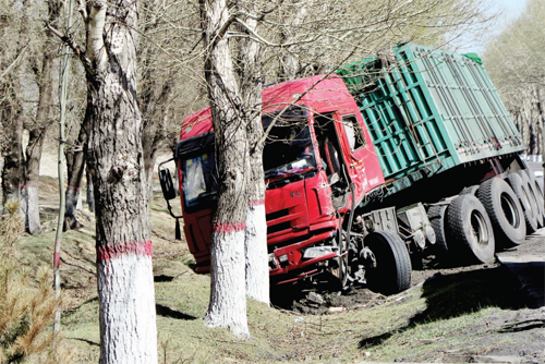 4 月20 日,記者途經(jīng)五寨縣三岔公路,看到一輛大貨車由于駕駛員疲勞駕駛撞在了路旁的大樹上,所幸未造成人員傷亡。在此筆者提醒廣大司機朋友,為了您的安全,切不可疲勞駕駛。(張志遠 攝影報道)