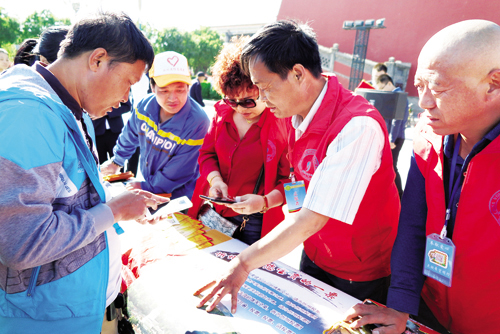 活動(dòng)吸引了四面八方的群眾,大家紛紛拿出手機(jī),掃描海報(bào)上的二維碼,現(xiàn)場關(guān)注“人說山西好風(fēng)光”微信公眾號(hào),為美麗家鄉(xiāng)忻州投上一票?!靶弥菸锶A天寶,人杰地靈,游遍神州,最美忻州”,“在忻州大地,佛教圣地五臺(tái)山、雄偉壯觀雁門關(guān)、薈萃十景蘆芽山、險(xiǎn)峻神奇老牛灣、世外桃源娘娘灘,諸多景觀世人驚嘆,魅力無窮,支持忻州申辦全省旅游發(fā)展大會(huì)”。市民在現(xiàn)場說。圖為投票現(xiàn)場(魯明強(qiáng))