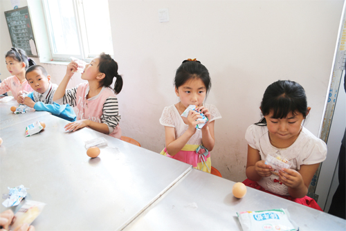 6 月23 日,靜樂縣中莊鄉(xiāng)中莊村小學(xué)學(xué)生正在吃領(lǐng)到的“營養(yǎng)餐”。截至目前,該縣共有4所初中、32 所小學(xué)、40 個教學(xué)點的2391 名中小學(xué)生每天均可享受到農(nóng)村義務(wù)教育“營養(yǎng)餐”所帶來的溫暖。(閆曉梅 攝)