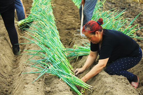 7月9日,原平市小河村民正在小麥收割田里回茬栽大蔥。原平市調(diào)整種植結(jié)構(gòu),適應(yīng)市場變化收到了較好的效果。在平川地區(qū),根據(jù)無霜期時間長,大力發(fā)展兩茬田種植,糧食與蔬菜得到均衡,既確保增產(chǎn)和市民菜籃子蔬菜供應(yīng),又促進了農(nóng)民增收。(吉建平 攝)