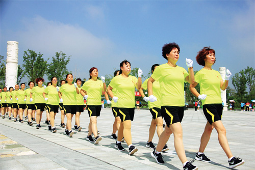 7 月17 日,“康樂健步走”團隊在忻州城區(qū)云中河景區(qū)開展“我運動,我健走,我健康,我快樂,我幸?!鼻私〔阶呋顒樱瑧c祝該團隊成立兩周年。“康樂健步走”團隊以“健康快樂”為口號,目前在全市已發(fā)展到50 余支健走隊伍。(吉建平 攝)