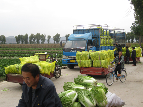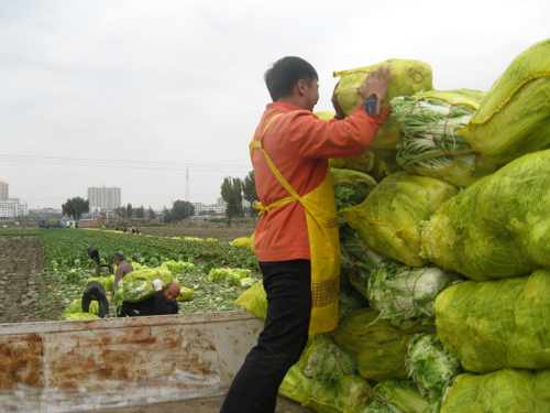 10月23日,河曲縣南園村大白菜種植戶忙著砍白菜、撕老幫、裝袋子,幫助內(nèi)蒙古準格爾旗、伊金霍洛旗和本縣沙泉鄉(xiāng)的客戶裝白菜,熱鬧中洋溢著豐收的喜悅。該村充分利用土肥水富、交通便利等優(yōu)越條件,大力發(fā)展蔬菜產(chǎn)業(yè),形成了“一村一品”產(chǎn)、供、銷格局,成為晉陜蒙交匯地區(qū)蔬菜基地。特別是近千畝優(yōu)質(zhì)大白菜深受縣內(nèi)外經(jīng)銷商和消費者青睞,每年霜降前后,周邊市縣前來購買的菜販絡(luò)繹不絕。(賈金理攝)