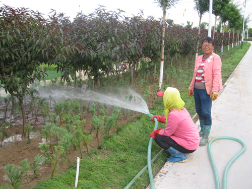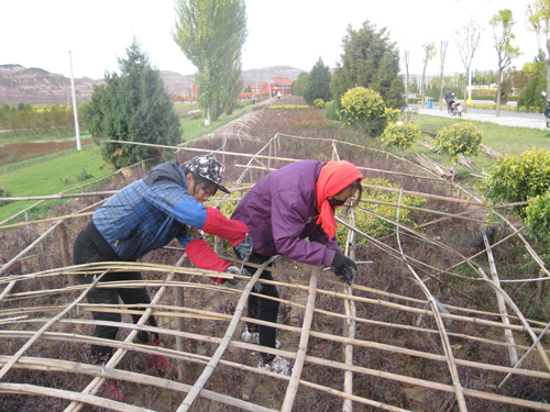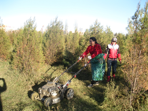 11月7日,河曲縣濱河濕地公園女工手推割草機割刈樹地的枯萎花草,顯得風采奕奕。今年以來,數(shù)十名女工撲下身子,與漢子們一道建設450畝濕地公園,一次又一次植綠、澆水、鋤草,近日還為綠籬色帶建“防寒屋”、為樹木穿“保暖衣”、收拾花境“殘局”,成為新建公園里四季美麗的風景線。(賈金理 攝)