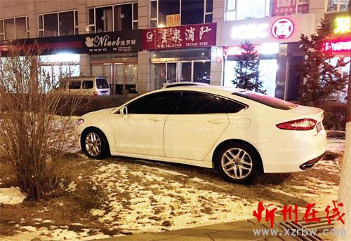 12月15日,記者途經(jīng)市區(qū)團結(jié)西街和建設北路交叉路口,在東南角看到一輛白色轎車停在路邊的綠化帶上,碾壓草地,讓人心疼。
