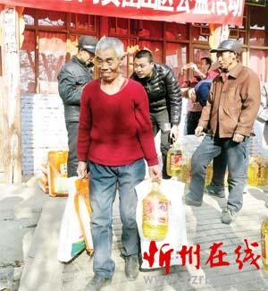 驅(qū)車行駛一個多小時后,大家來到了位于忻州城西的李家垴村。村里現(xiàn)在常住人口只有24戶,多是孤寡老人,車友們?yōu)槊繎羲蜕狭艘环荨靶麓捍蠖Y包”。領(lǐng)到米面的王變花老人激動地說道:“國家的政策越來越好,村里人辦了低保、五保,衣食無憂,還有你們這樣的愛心人士關(guān)心我們,不僅給米面油,還親自送到家里來,今年能過個好年啦!”圖為村民滿載而歸(實習(xí)記者 許凈)