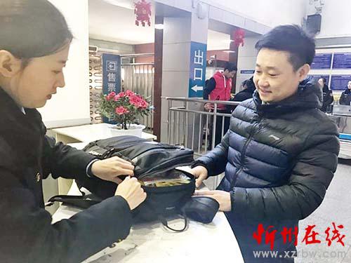 本報訊2月2日,農(nóng)歷大年初六,上午10點,忻州火車站“心之舟”服務(wù)臺工作人員杜蕊在巡視候車室時,發(fā)現(xiàn)座椅上有一個黑色背包(內(nèi)裝嬰兒用品),問詢周圍旅客無人認領(lǐng)后,立即聯(lián)系廣播室對售票廳、站臺進行廣播失物招領(lǐng)。此時,在站臺上等車的旅客張先生聽到廣播,意識到背包丟失,立即聯(lián)系到工作人員,在登車前取回遺落的背包。張先生稱,自己攜帶了好幾件行李,檢票時著著急急也沒有清點,他非常感謝車站的工作人員。