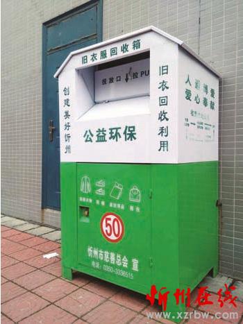 市慈善總會工作人員表示,下一步市慈善總會將與志愿者組織聯(lián)合制作更多的舊衣服回收箱,投放覆蓋忻州城區(qū)所有小區(qū),使我市的慈善捐助工作機制逐步走向常態(tài)化。圖為設置在惠民小區(qū)的舊衣物回收箱(魯明強)