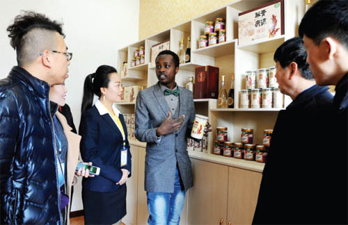 本報(bào)訊12月2日,在太原舉行的特色農(nóng)產(chǎn)品展示會上,來自肯尼亞的黑人小伙孔健為靜樂縣種植的藜麥產(chǎn)品代言。在肯尼亞,孔健自小就是吃藜麥長大的,展示會上,山西省農(nóng)科院與山西金壤惠生物料技有限公司合作推出的10余種藜麥深加工產(chǎn)品讓他眼花繚亂。據(jù)悉,目前靜樂縣全縣藜麥種植總規(guī)模已擴(kuò)大至1萬畝,藜麥深加工產(chǎn)品極大助力了當(dāng)?shù)剞r(nóng)戶脫貧致富。(鐘清)