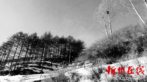 天依然是那么藍(lán)、雪依然是那么白,挺拔的蒼松翠柏迎風(fēng)而立、枝頭樹(shù)梢掛滿(mǎn)了厚厚的積雪。偶爾傳來(lái)一陣陣松林的濤聲,那濤聲回蕩在山谷,打破了山野的寂靜。