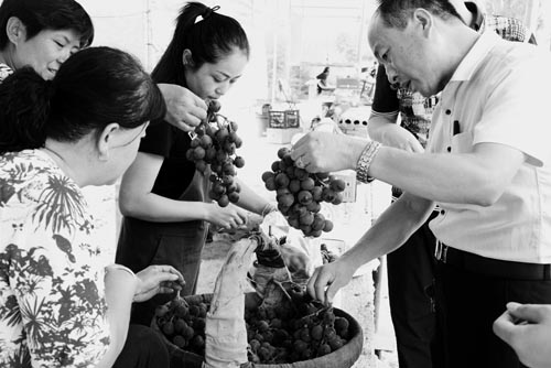 8月27日,位于河偏路邊的河曲縣焦尾城村葡萄交易市場,迎來一撥又一撥停車選購葡萄的顧客。該村大力發(fā)展無公害綠色葡萄,所產(chǎn)葡萄酸甜適度,口感極佳,在廣大消費者心目中樹立了良好品牌形象,農(nóng)民因此獲得了可觀的經(jīng)濟收入。(賈金理 攝)