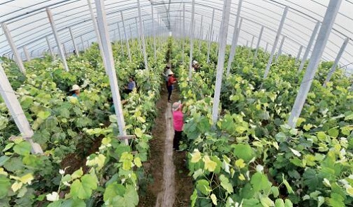 前幾年,定襄的設(shè)施農(nóng)業(yè)種植分散、設(shè)施條件差、收益低。受祿鄉(xiāng)在發(fā)展設(shè)施農(nóng)業(yè)的過程中總結(jié)出了“支部引領(lǐng),村委支持,黨員帶頭,群眾跟進(jìn),吸納貧困戶”的經(jīng)驗并在全縣起到示范作用。建規(guī)模園區(qū)土地流轉(zhuǎn)首當(dāng)其沖,受祿鄉(xiāng)在流轉(zhuǎn)土地的時候,采取“農(nóng)民報名,統(tǒng)一規(guī)劃,簽訂合同”的辦法。流轉(zhuǎn)集中的土地,各村負(fù)責(zé)“三通一平”。定襄的設(shè)施農(nóng)業(yè),已經(jīng)從以前的改良式塑料大棚,發(fā)展到現(xiàn)在廣泛推廣的下凹式日光溫室和全鋼架春秋大棚,棚內(nèi)作物也實現(xiàn)了由普通蔬果到甜瓜、草莓、西蘭花等“新特優(yōu)”產(chǎn)品的轉(zhuǎn)型。