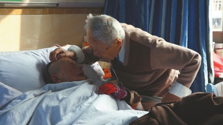 “我20歲了!”鐘婆婆的回答讓護(hù)工有些哭笑不得,也許她還記得,20歲是她最好的年紀(jì),那一年她嫁給了他。時(shí)光涌動(dòng),穿過她的記憶,或許她的年華定格在了20歲,只有身邊的他,記得他們已經(jīng)相伴了70年。(記者 田之路 吳楓)