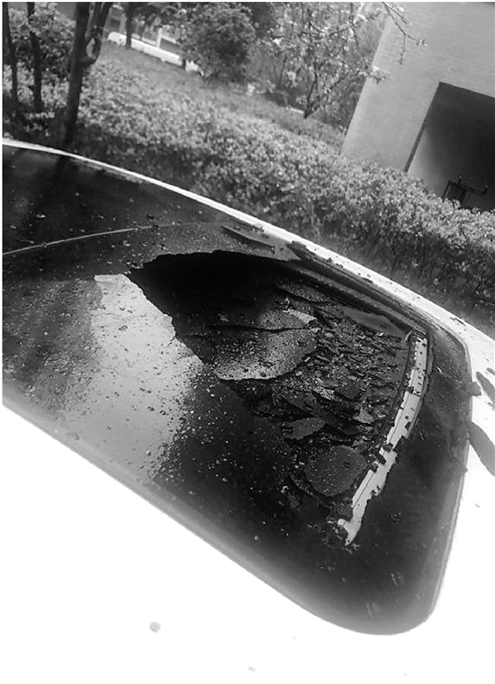 李師傅家住杭州丁橋蘭苑小區(qū),近一個月前,他女兒的一輛凱迪拉克轎車的車頂,被砸出了一個“天窗”。