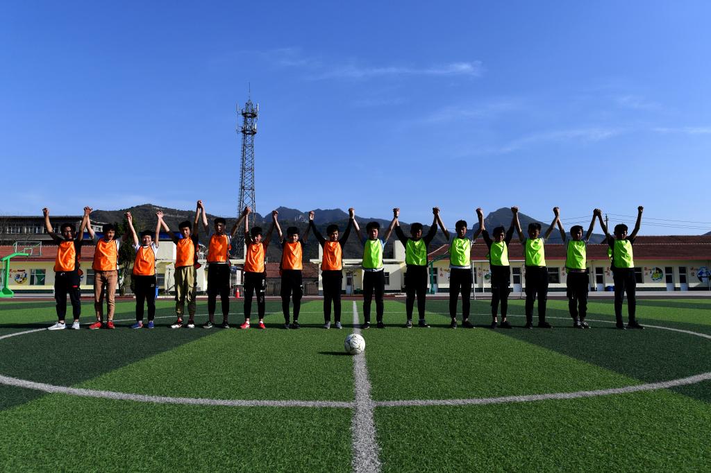 黃崖洞九年制學(xué)校地處太行山深處,是一所農(nóng)村寄宿制足球特色學(xué)校。2017年,山西省有關(guān)部門(mén)撥款210萬(wàn)元為學(xué)校建設(shè)專(zhuān)業(yè)足球場(chǎng),把原來(lái)的石子粒操場(chǎng)升級(jí)為人工草皮,并修建了200米環(huán)形塑膠跑道。每天的足球運(yùn)動(dòng)時(shí)間,孩子們?cè)谇驁?chǎng)上的歡笑聲便打破了山區(qū)的寂靜,足球已經(jīng)成為孩子們生活和學(xué)習(xí)中不可少的一部分。