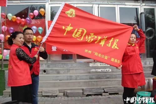 儀式上,中國(guó)雷鋒報(bào)忻州工作站副站長(zhǎng)溫曉軍為陽(yáng)光公益聯(lián)絡(luò)處揭牌,副站長(zhǎng)李杰慧為陽(yáng)光公益服務(wù)隊(duì)授隊(duì)旗。
