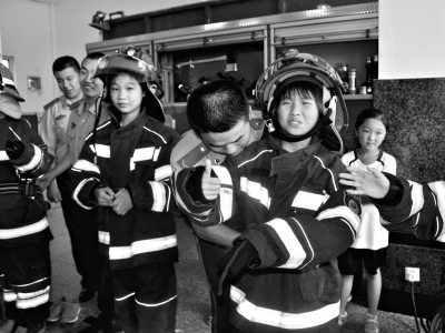 “叔叔,這是干什么用的?” 樂樂拿起一個面罩轉(zhuǎn)了幾圈?!斑@個叫防毒面具,可以防止毒氣、煙霧進(jìn)入鼻子和嘴巴。”一名消防員戰(zhàn)士告訴樂樂,在發(fā)生火災(zāi)時,為了防止毒氣、煙霧吸入口中,小朋友們可以用濕毛巾代替,把濕毛巾對折捂住嘴巴和鼻子?!懊泶驖窈笞詈蒙晕Q一下,讓毛巾不滴水,這樣防毒的效果最好。”