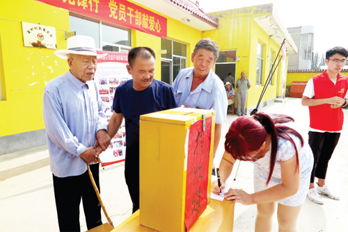 晏村村委會組織的捐款現(xiàn)場