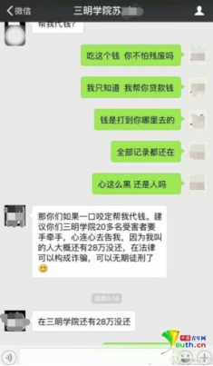 這中間有人催蘇某還款,被蘇某告知三明學(xué)院有20余人受騙,“大概還有28萬沒還”。