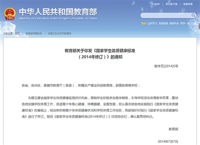 目前學(xué)校實(shí)行的相關(guān)體測(cè)標(biāo)準(zhǔn)依據(jù)的是2014年教育部印發(fā)的《國家學(xué)生體質(zhì)健康標(biāo)準(zhǔn)》。 網(wǎng)絡(luò)截圖