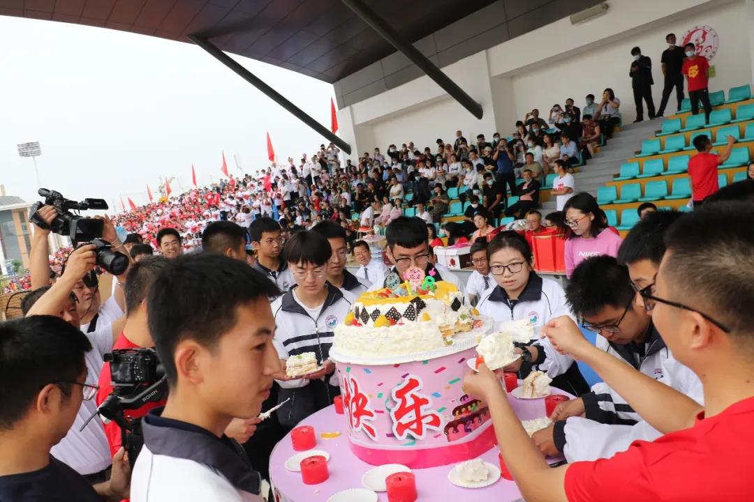十八歲,成年成人;十八歲,成長(zhǎng)成才。學(xué)校每年在這個(gè)時(shí)候都會(huì)為學(xué)子們舉行集體生日,家長(zhǎng)們則為每個(gè)班準(zhǔn)備了生日蛋糕,在父母、師長(zhǎng)的見證和祝福下,同學(xué)們走向人生的新階段。年級(jí)主任解鴻志、張高強(qiáng)老師共同推來(lái)一個(gè)巨型蛋糕,老師們一齊向?qū)W生祝福,校領(lǐng)導(dǎo)共同為學(xué)生點(diǎn)燃生日蠟燭,伴隨著《生日快樂(lè)》的歌聲,同學(xué)們雙目微閉,雙手合十,面對(duì)父母、師長(zhǎng),面對(duì)自己憧憬的未來(lái),默默許下美好愿望。