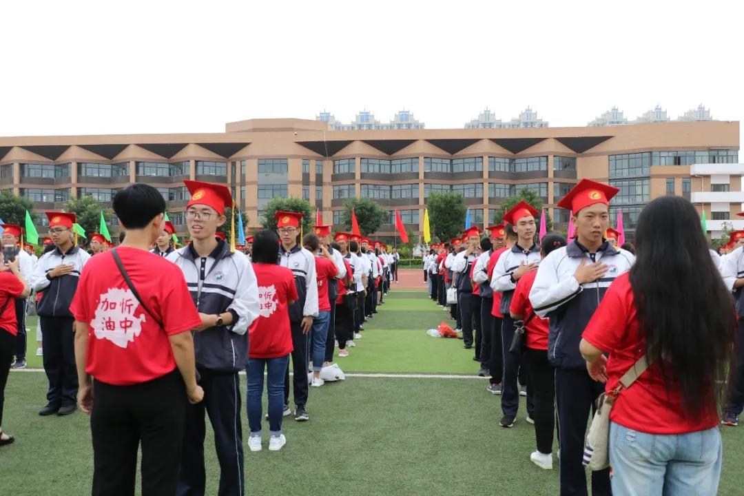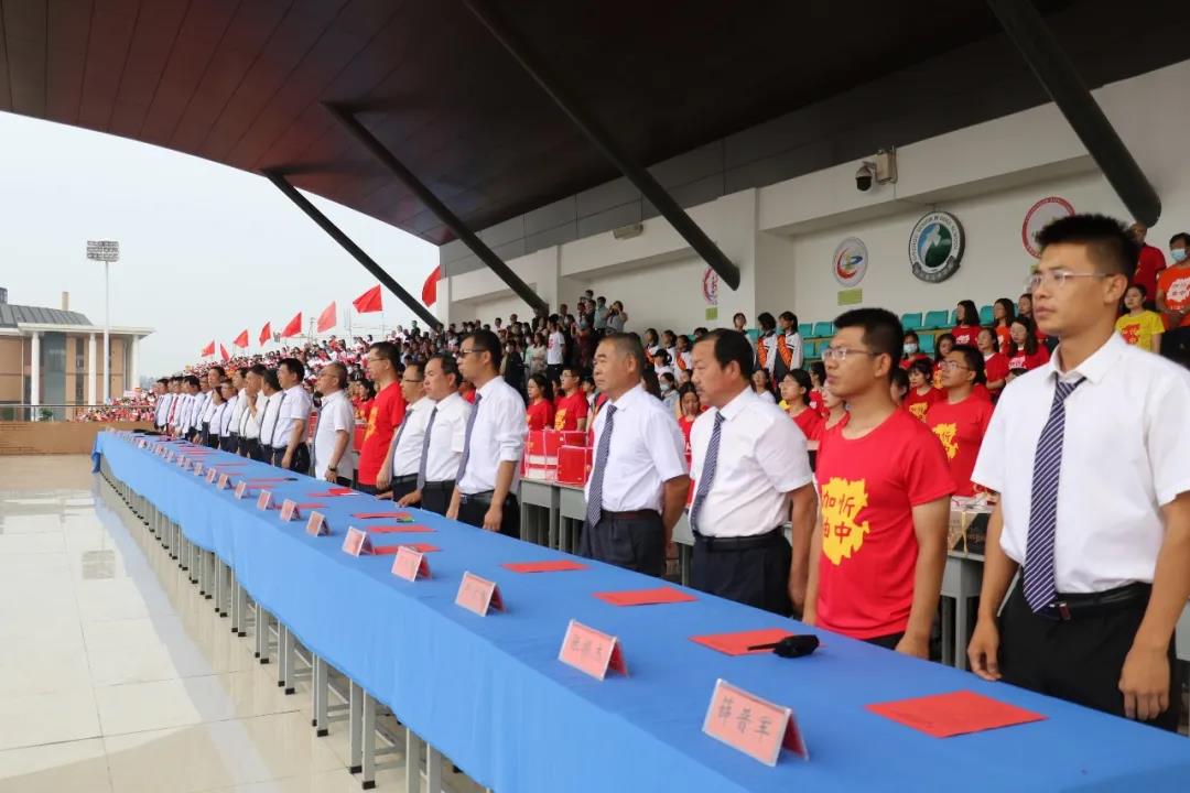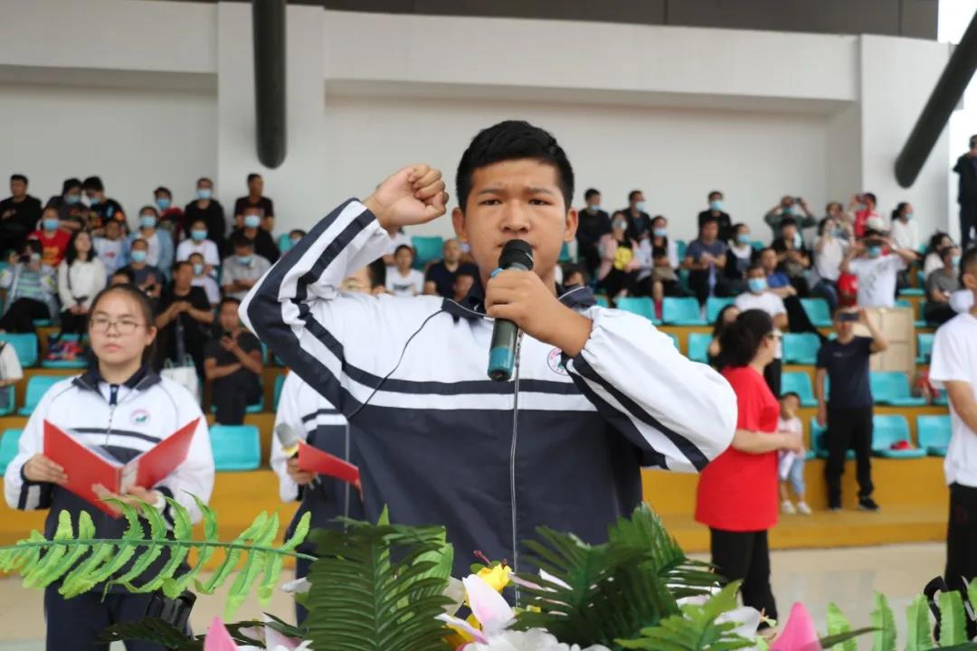 “少年智則國(guó)智,少年富則國(guó)富;少年強(qiáng)則國(guó)強(qiáng),少年獨(dú)立則國(guó)獨(dú)立……”激昂奮進(jìn)的聲音在北校區(qū)的操場(chǎng)上空回響,在全體高三學(xué)生《少年中國(guó)說(shuō)》激情澎湃的誦讀聲中,本次大會(huì)正式開始。莊嚴(yán)的升旗儀式后,學(xué)生代表、教師代表和家長(zhǎng)代表依次獻(xiàn)詞:好友同窗與共的奮斗時(shí)光,老師日復(fù)一日的悉心陪伴,父母無(wú)私無(wú)盡的付出關(guān)愛,在一句句溫情感人的獻(xiàn)詞中歷歷浮現(xiàn),激蕩心靈。