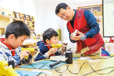 在多年的教學(xué)實(shí)踐中,陳少華發(fā)現(xiàn),很多孩子缺少動(dòng)手能力,尤其是對(duì)科學(xué)技術(shù)類的興趣不大、手動(dòng)不勤?!拔覀円煤米约旱膶iL(zhǎng),守護(hù)好孩子們的科學(xué)心?!痹诤J飬^(qū)政協(xié)的支持下,這片不到100平方米的空間,成了陳少華踐行科普理念的試驗(yàn)田。