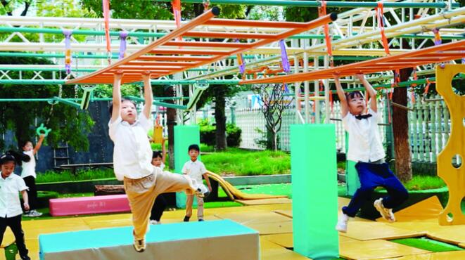 早在今年兒童節(jié)前夕,這套設(shè)備就已經(jīng)安裝完畢,孩子們特別喜歡室外的這套設(shè)施?!拔覀儗⑦@套硬核體能課程在暑假班實(shí)施的打算跟家長(zhǎng)溝通過(guò),大家都很支持。”王艷表示,室外課程一般安排在早晨或雨后比較涼快的時(shí)候,大部分訓(xùn)練以室內(nèi)課為主。